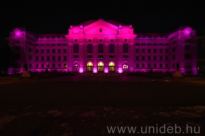Méhnyakrák hete, lilával kivilágított Főépület, tematikus napok, DE